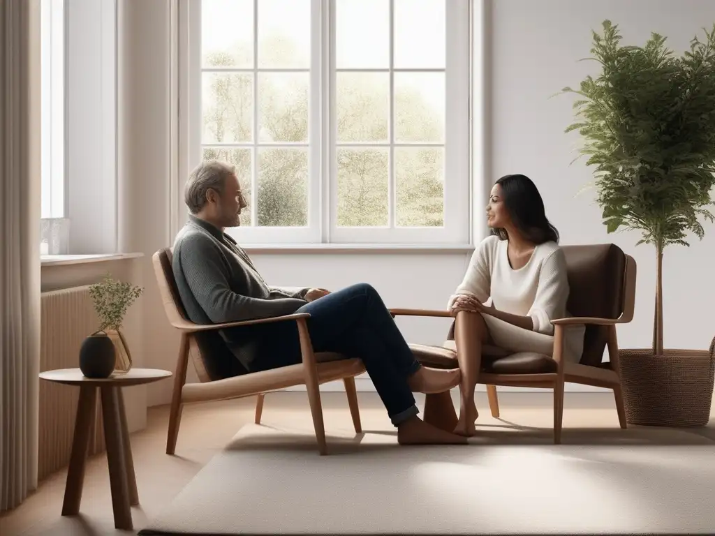 Sala minimalista y tranquila, padre e hijo en conversación íntima y amorosa