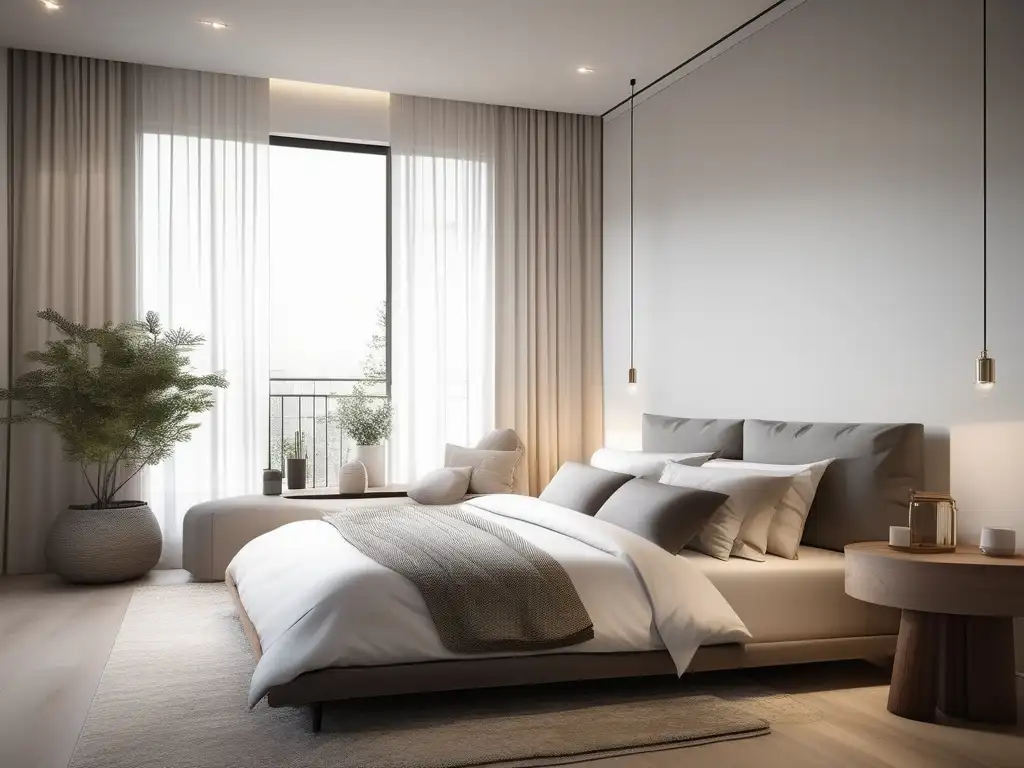 Hábitos saludables en una habitación minimalista y serena, ideal para el descanso